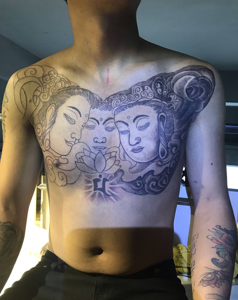 网红3面佛纹身图片_胸部纹身图案