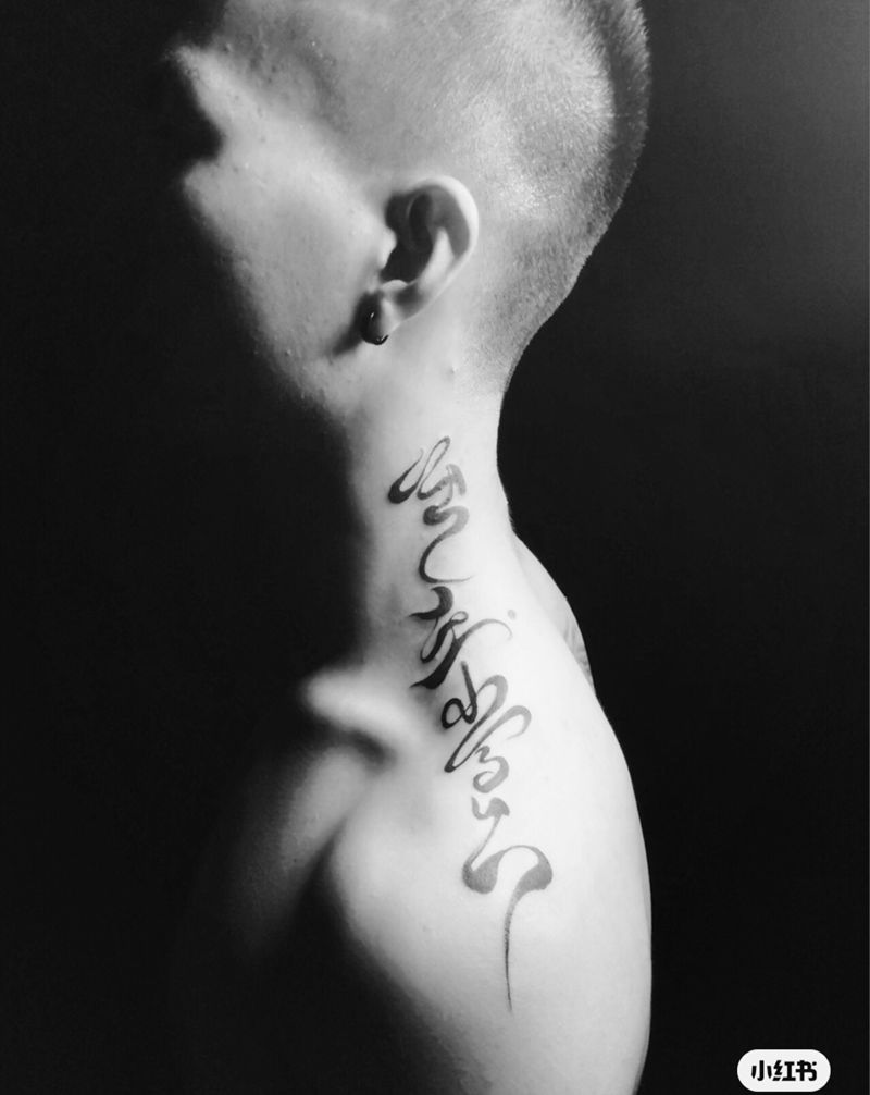字纹身图片_颈部纹身图案