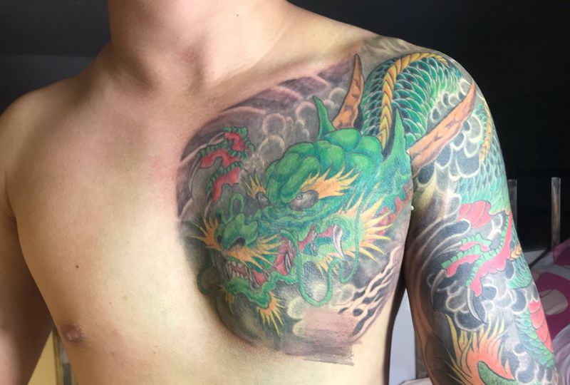 当前位置: 首页 >广东省汕头市纹身店-领绣纹身机构纹身图案>过肩龙遮盖完工纹身图片_肩部胸部纹身图案