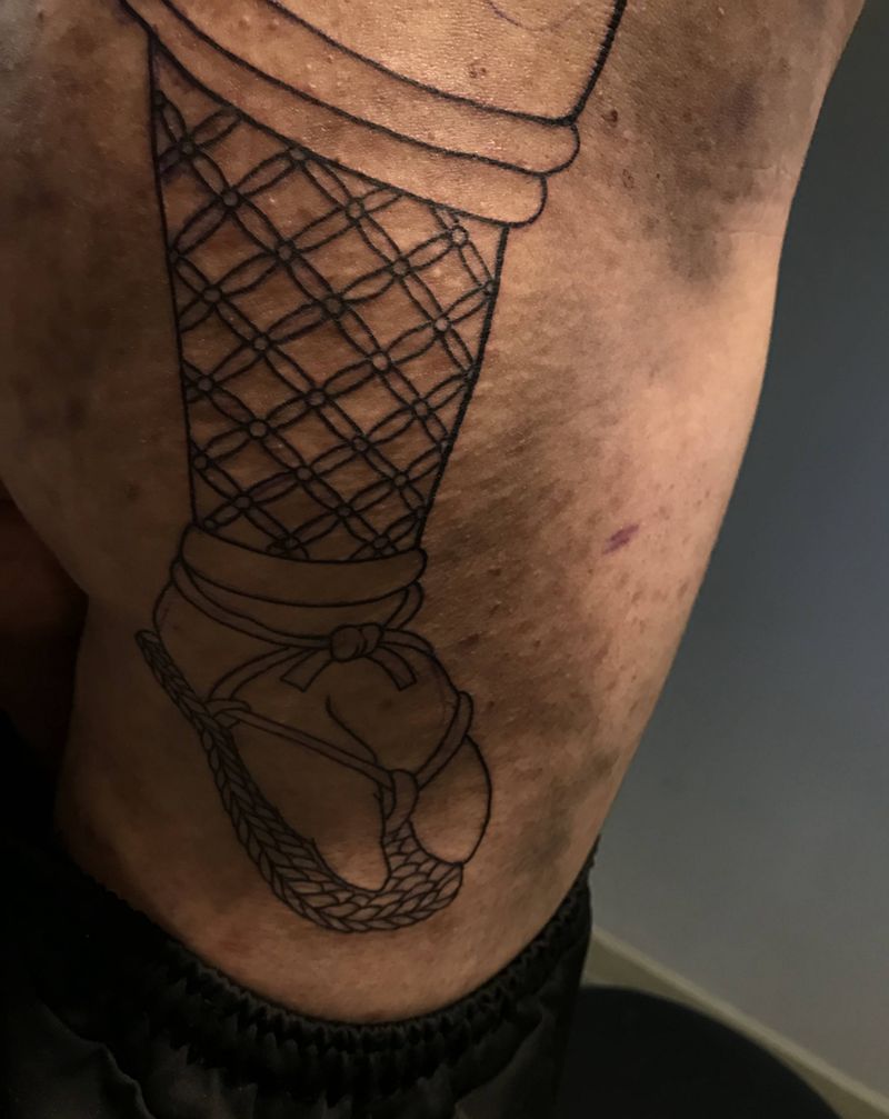 • T包小腿吹火男+阿多福纹身图片_腿部老传统新传统吹火男阿