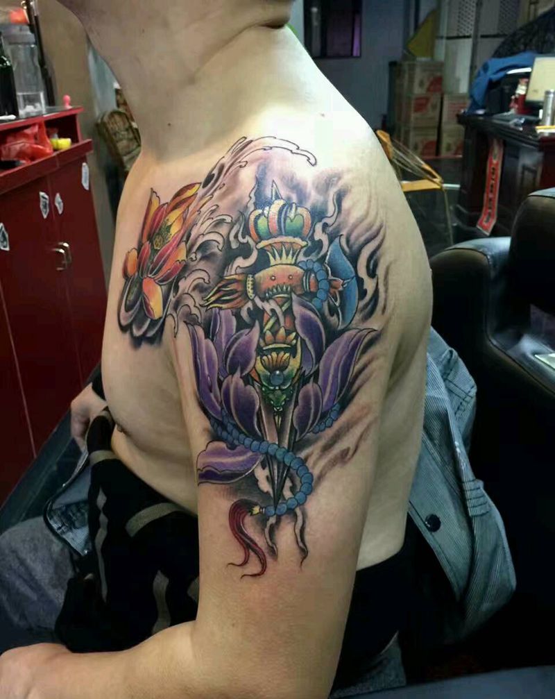 降魔杵。两种风格纹身图片_手臂传统图腾宗教纹身图案