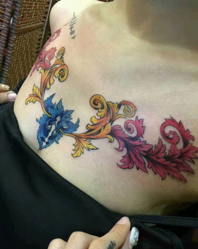 • 女性大花胸纹身_43张霸气漂亮的女性大花胸纹身图案作品