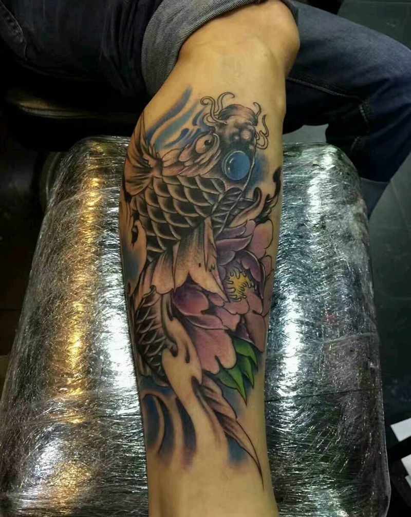 当前位置: 首页 >广东省佛山市纹身店-彫眞刺青纹身图案>鲤鱼纹身图片_腿部脚部传统动物成品纹身图案