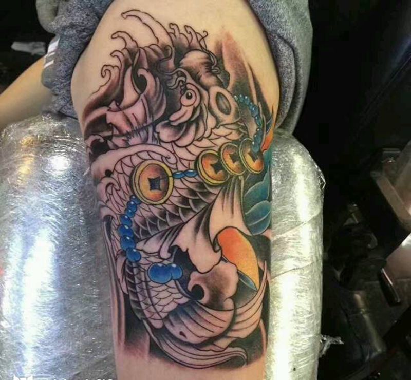 当前位置: 首页 >广东省佛山市纹身店-彫眞刺青纹身图案>鲤鱼期待成品纹身图片_手臂传统纹身图案