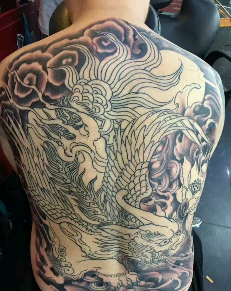 黑灰满背纹身图案