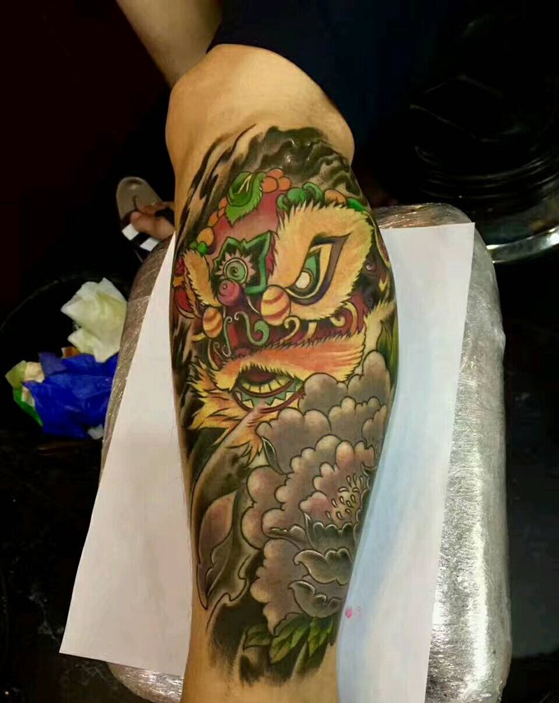 当前位置: 首页 >广东省佛山市纹身店-彫眞刺青纹身图案>狮子纹身图片_腿部传统成品纹身图案