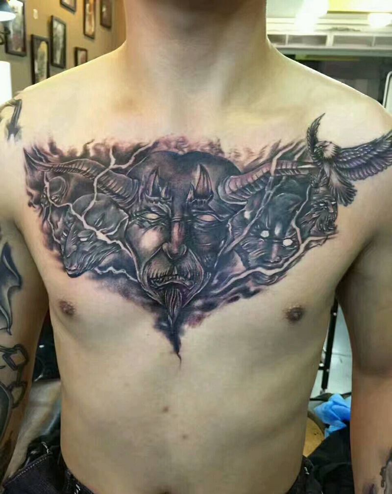头纹身图片_胸部欧美鬼神成品纹身图案