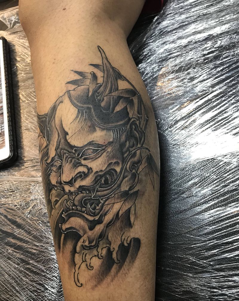 般若纹身图片_腿部新传统纹身图案