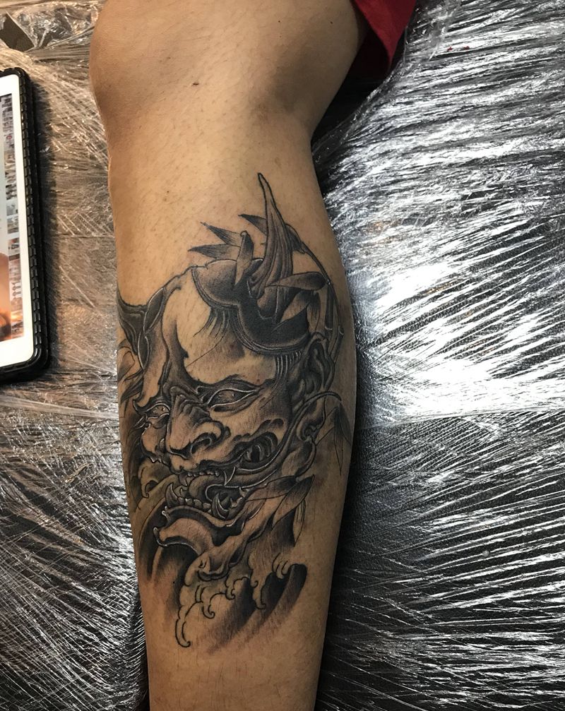 般若纹身图片_腿部新传统纹身图案