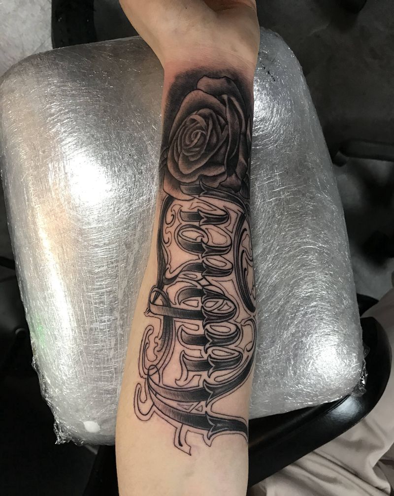 花体字纹身图片_手臂花体字纹身图案