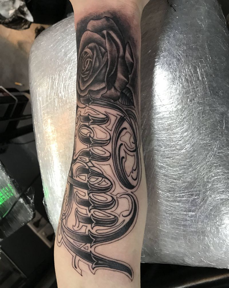 当前位置: 首页 >广东省佛山市纹身店-彫眞刺青纹身图案>花体字纹身图片_手臂花体字纹身图案