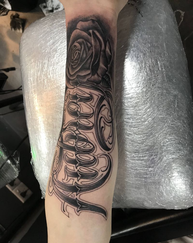 花体字纹身图片_手臂花体字纹身图案