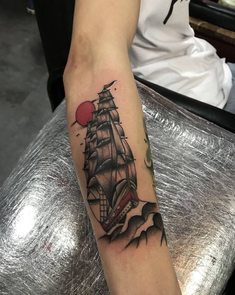 当前位置: 首页 >广东省佛山市纹身店-彫眞刺青纹身图案>帆船⛵️纹身图片_手臂Old School纹身图案