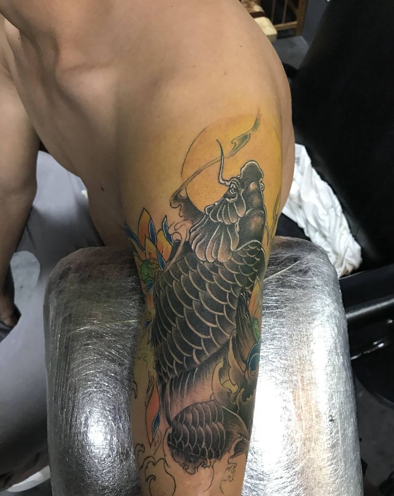 当前位置: 首页 >广东省佛山市纹身店-彫眞刺青纹身图案>鲤鱼纹身图片_手臂新传统纹身图案