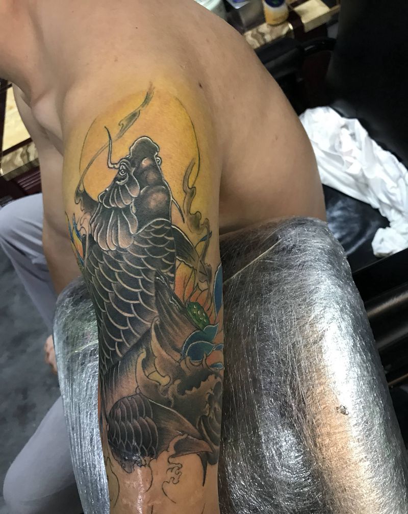 当前位置: 首页 >广东省佛山市纹身店-彫眞刺青纹身图案>鲤鱼纹身图片_手臂新传统纹身图案