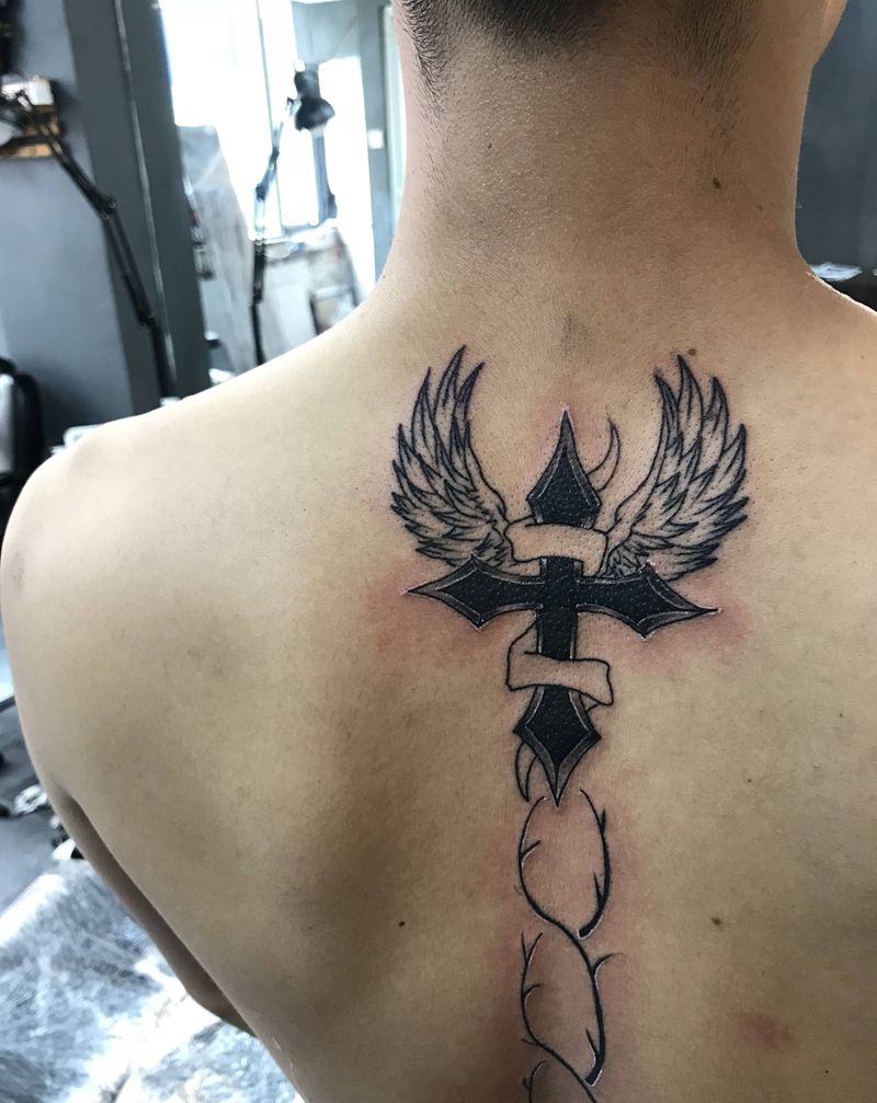 当前位置: 首页 >广东省佛山市纹身店-彫眞刺青纹身图案>十字架✝️纹身图片_背部纹身图案