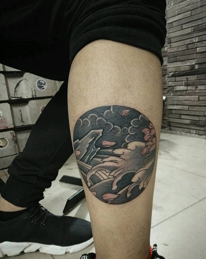 日式风格纹身图片_腿部传统成品纹身图案