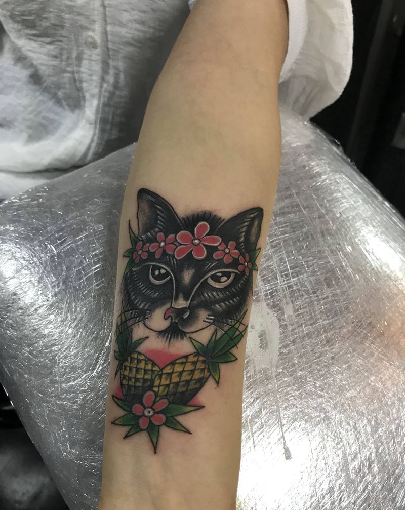 当前位置: 首页 >广东省佛山市纹身店-彫眞刺青纹身图案>猫咪盖图纹身图片_手臂纹身图案