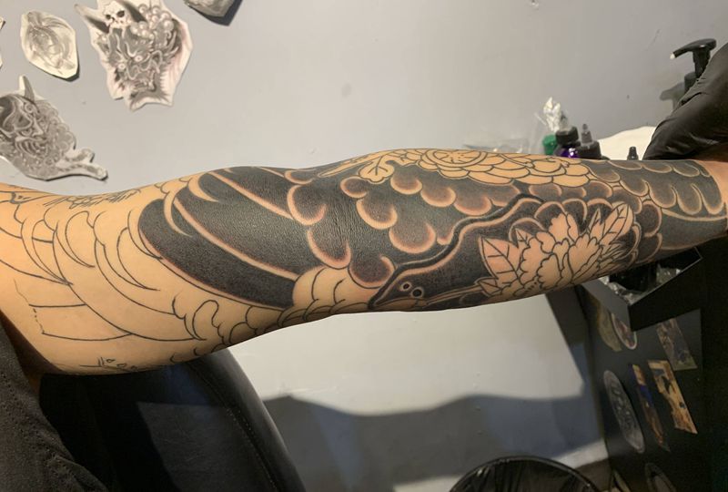 当前位置: 首页 >广东省佛山市纹身店-彫眞刺青纹身图案>老传统花臂未完成纹身图片_手臂老传统纹身图案
