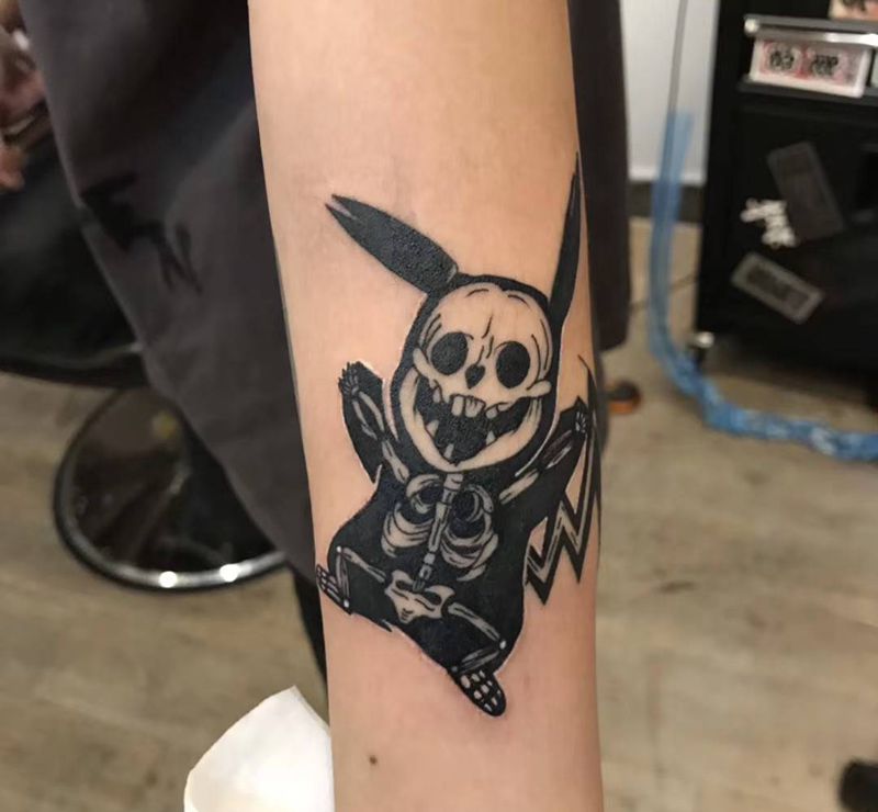 死亡皮卡丘纹身图片_手臂Old School纹身图案