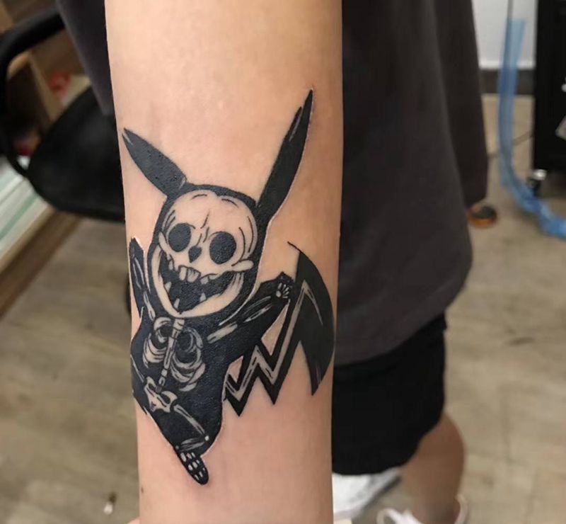 死亡皮卡丘纹身图片_手臂Old School纹身图案