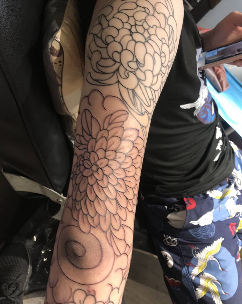 当前位置: 首页 >广东省佛山市纹身店-彫眞刺青纹身图案>老传统花臂线条纹身图片_手臂老传统纹身图案