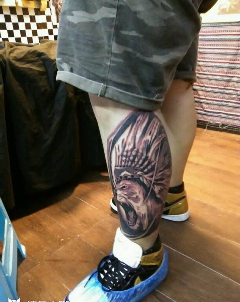 当前位置: 首页 >广东省佛山市纹身店-西樵鲤狮虎刺青纹身图案>印第安狮子纹身图片
