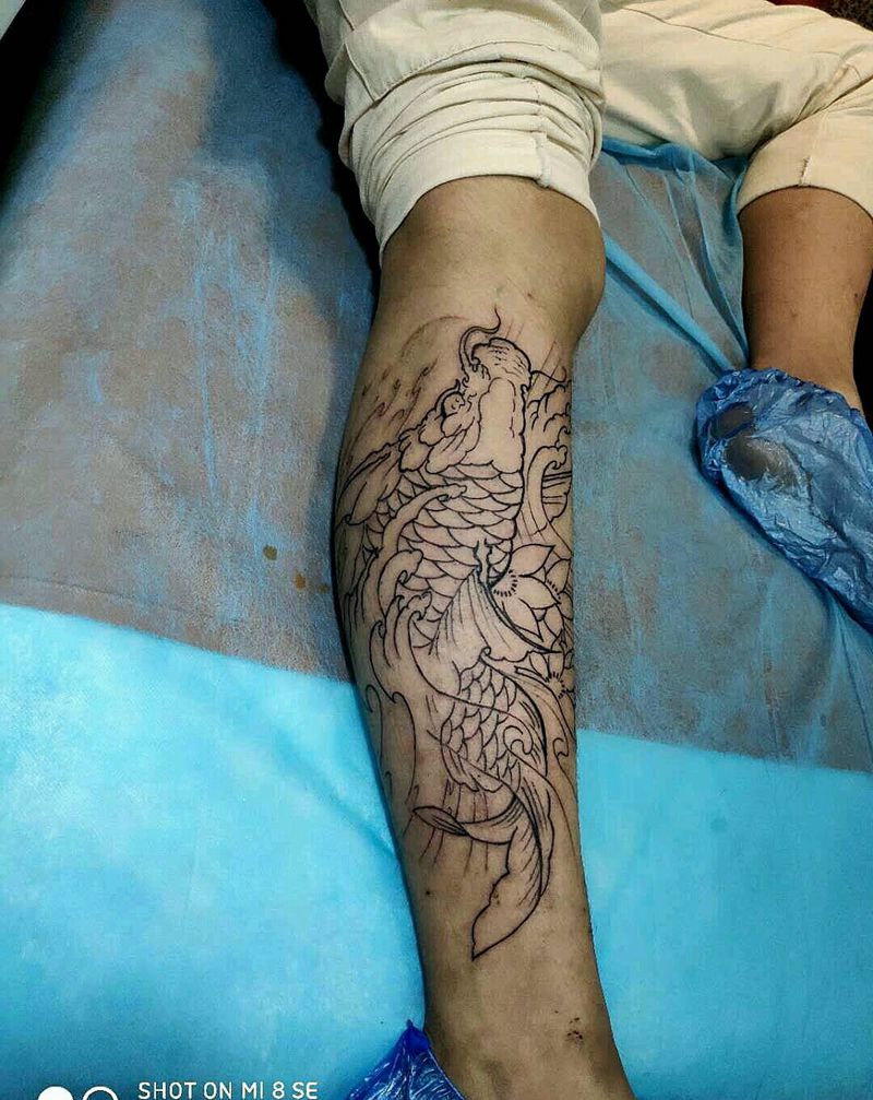 当前位置: 首页 >广东省佛山市纹身店-西樵鲤狮虎刺青纹身图案>鲤鱼线条纹身图片_腿部纹身图案