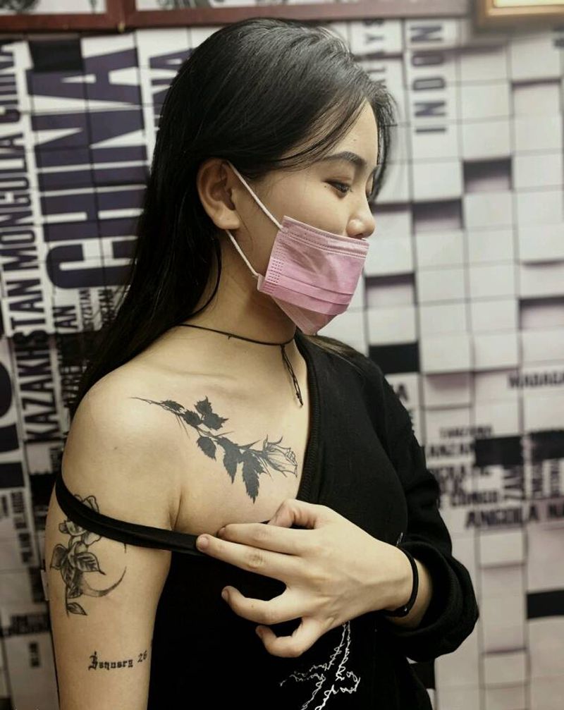 当前位置: 首页 >广东省佛山市纹身店-西樵鲤狮虎刺青纹身图案>遮盖玫瑰纹身图片_肩部纹身图案