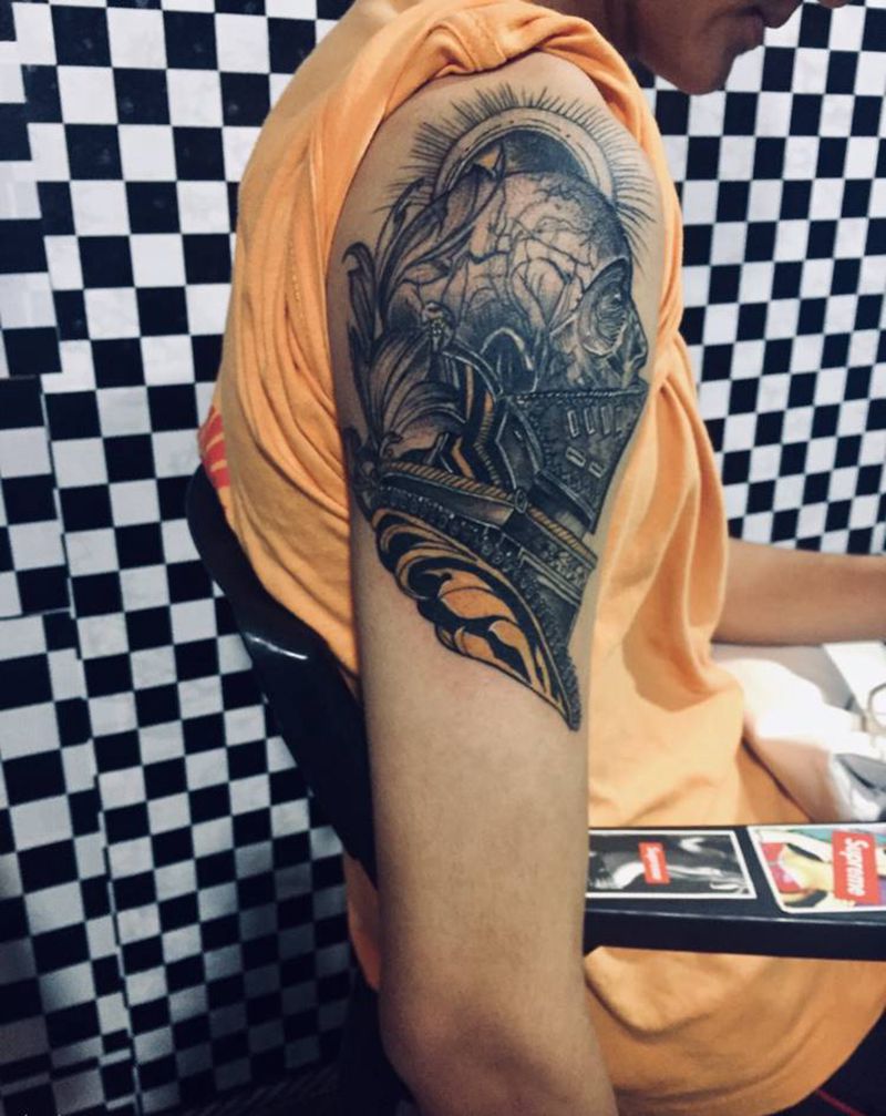 当前位置: 首页 >广东省佛山市纹身店-西樵鲤狮虎刺青纹身图案>骑士恢复一个月纹身图片_手臂纹身图案