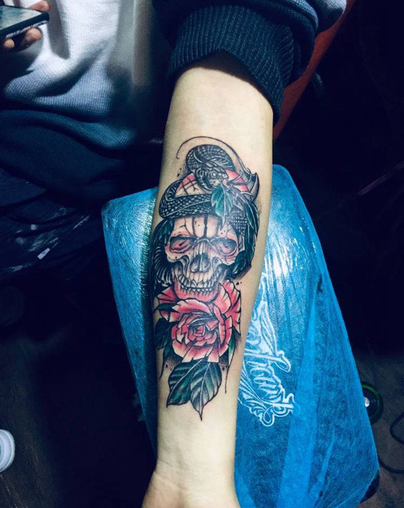 当前位置: 首页 >广东省佛山市纹身店-西樵鲤狮虎刺青纹身图案>骷髅玫瑰纹身图片_手臂纹身图案