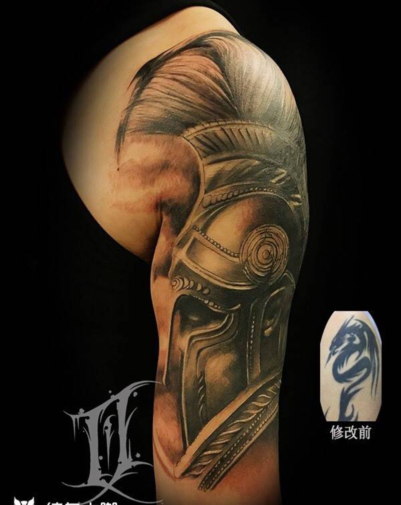 罗马战士遮盖纹身图片_手臂欧美写实遮盖纹身图案