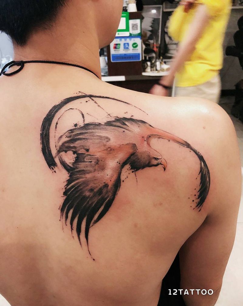水墨纹身图片_肩部背部水墨水彩纹身图案