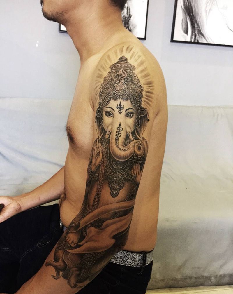 象神纹身图片_传统习俗鬼神动物宗教原创成品手臂手部纹身图案