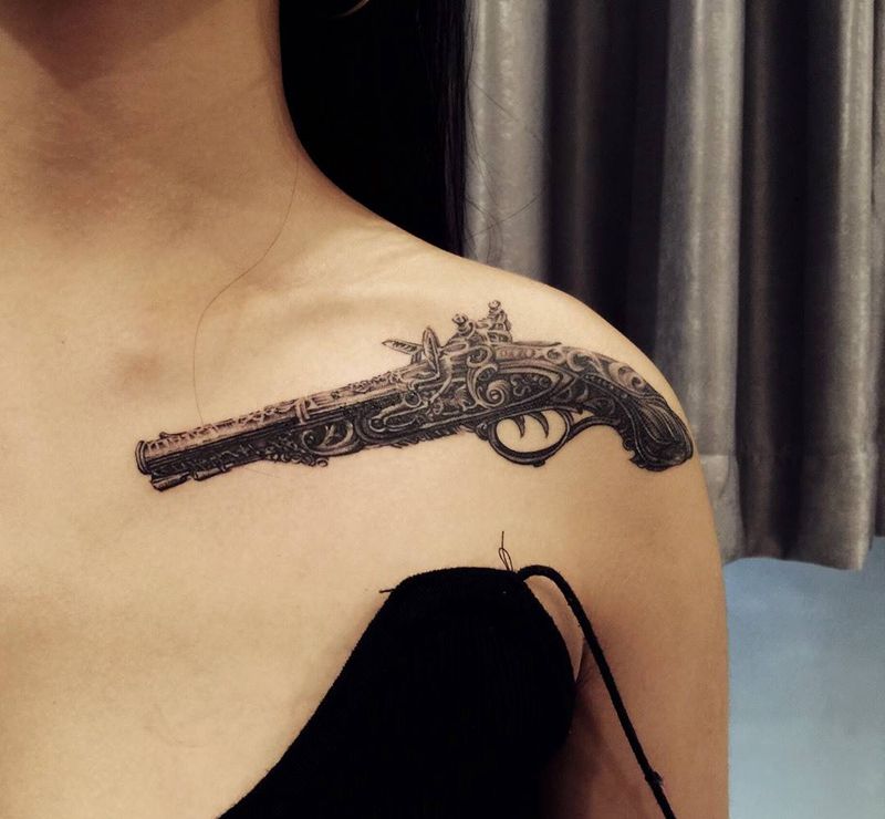 当前位置: 首页 >广东省江门市纹身店-12TATTOO纹身图案>双枪女侠……纹身图片_欧美成品胸部写实纹身图案