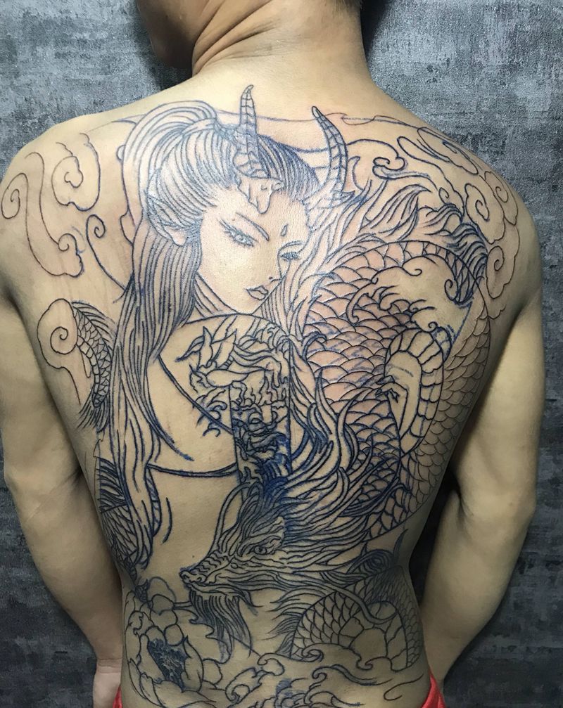 • T云龙九郎纹身图片_背部老传统云龙九郎纹身图案