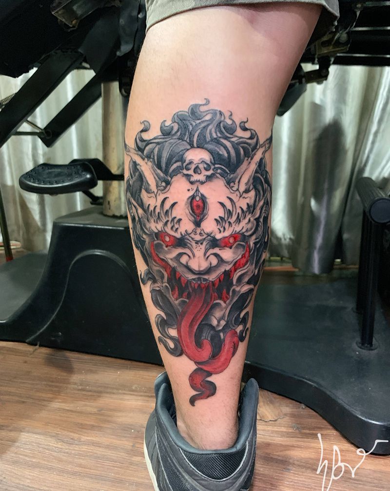 当前位置: 首页 >广东省湛江市纹身店-纹心刺青纹身图案>鬼纹身图片_腿部老传统新传统小腿纹身图案