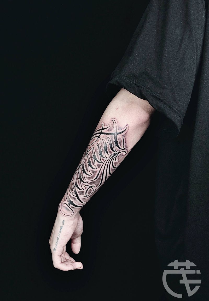 当前位置: 首页 >广东省江门市纹身店-茂.刺青纹身图案>Valiant 奇卡诺花体字纹身图片_手臂手部花体字纹身图案
