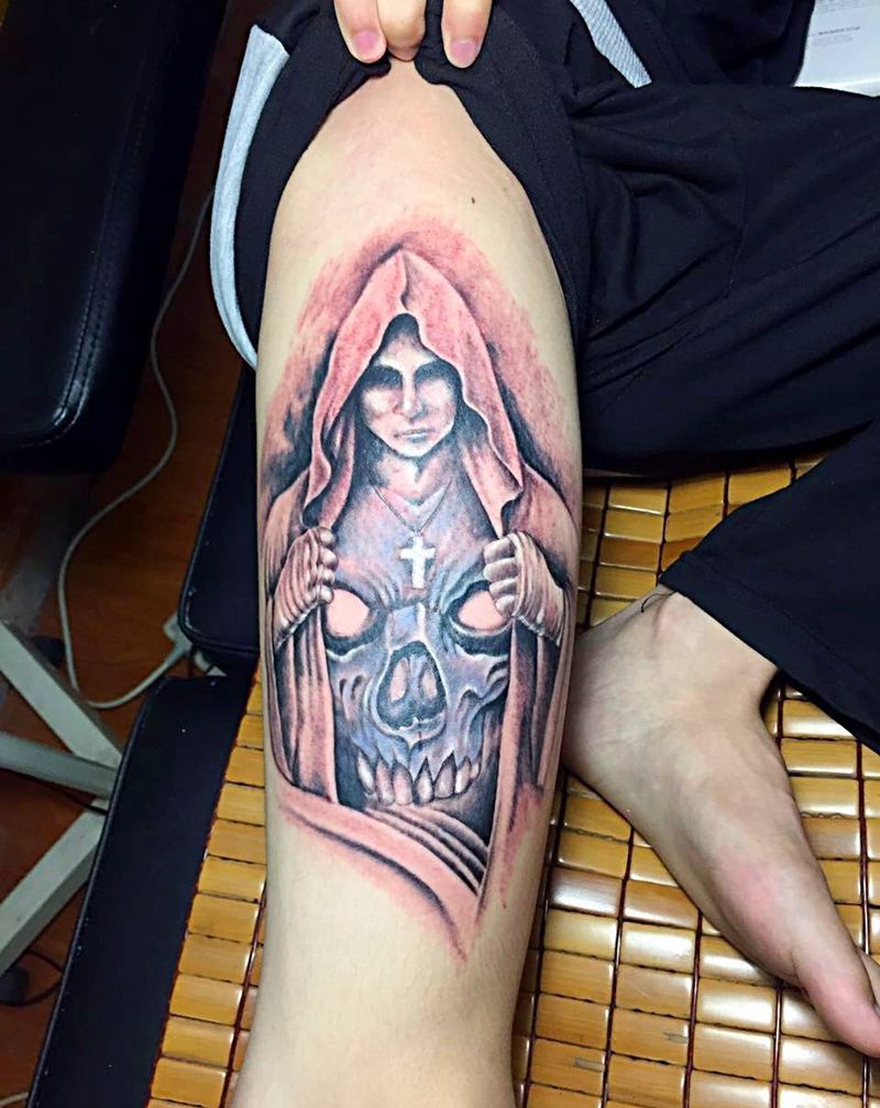 当前位置: 首页 >广东省江门市纹身店-茂.刺青纹身图案>圣斗士纹身图片_成品腿部欧美肖像人物纹身图案