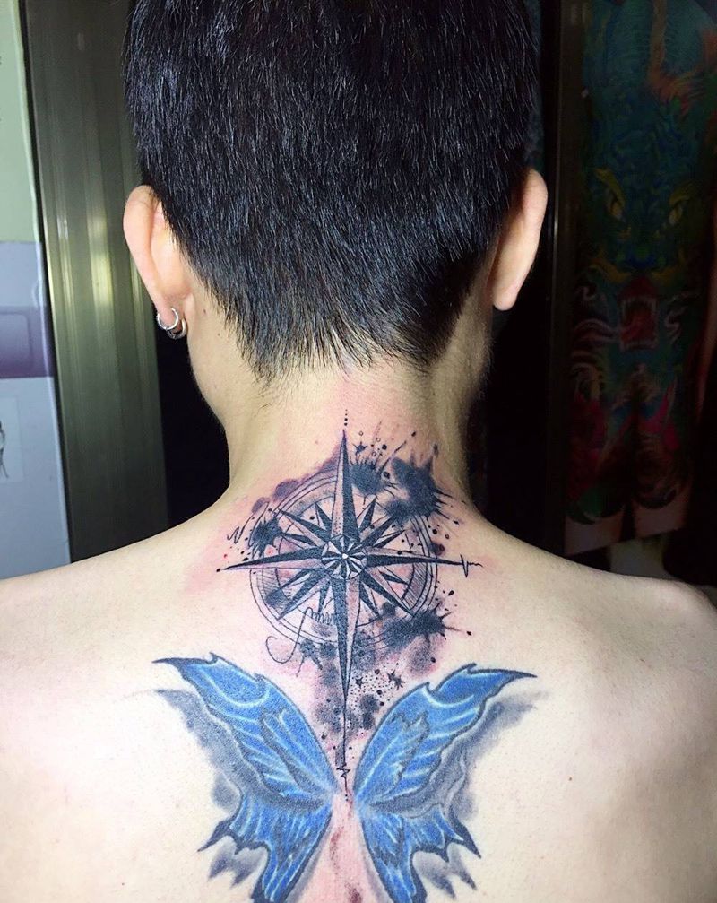 指南针纹身图片_颈部成品几何图腾纹身图案