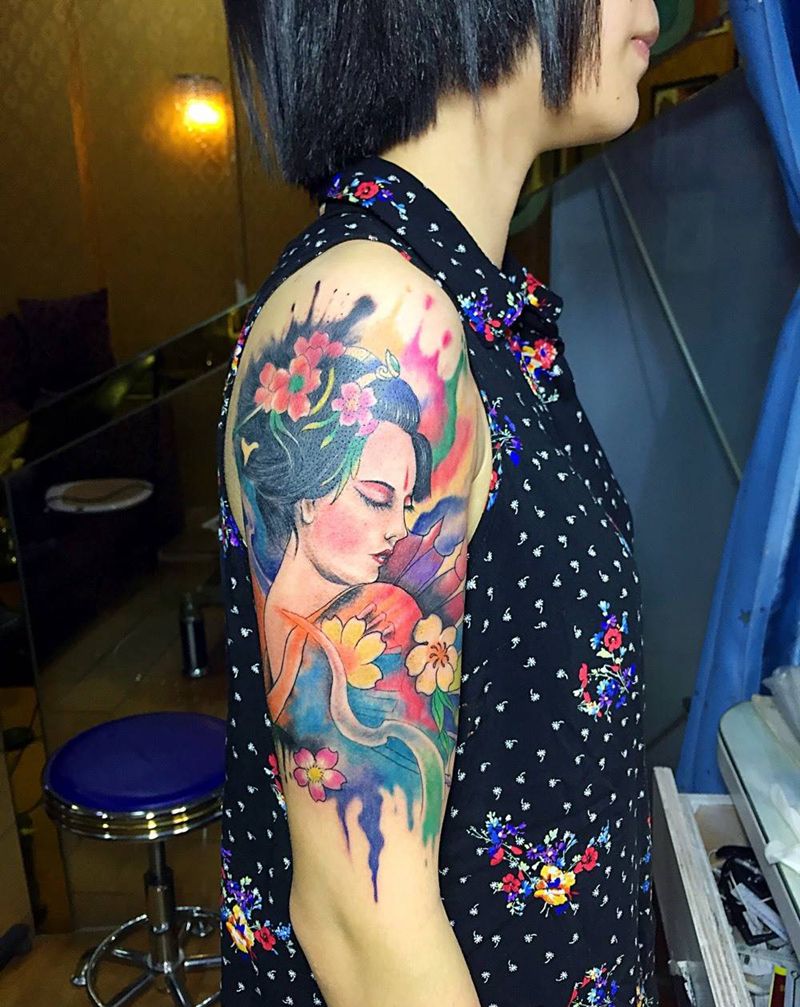 当前位置: 首页 >广东省江门市纹身店-茂.刺青纹身图案>水彩艺妓纹身图片