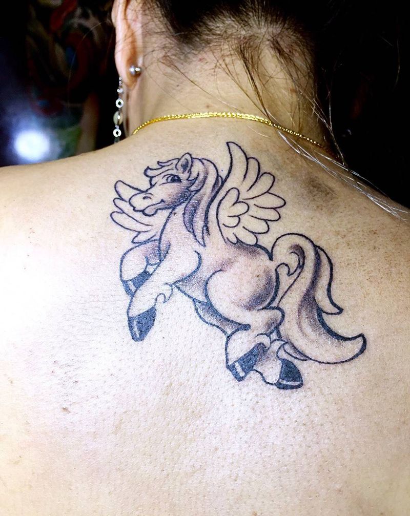 神马纹身图片_颈部清新动物手稿成品纹身图案