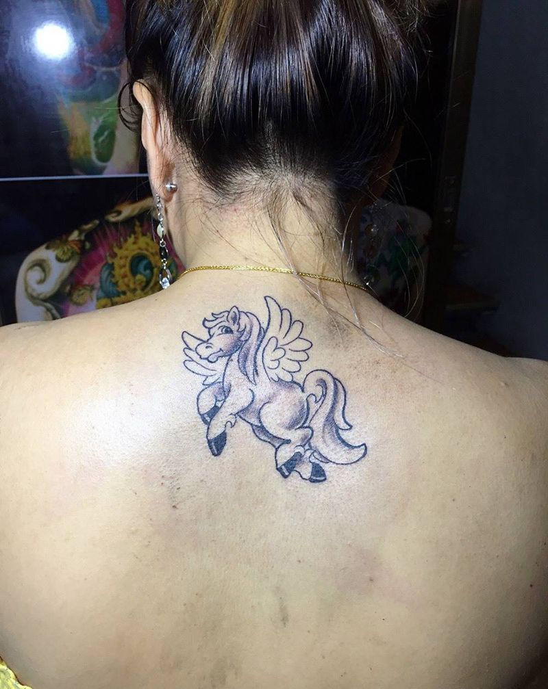 神马纹身图片_颈部清新动物手稿成品纹身图案