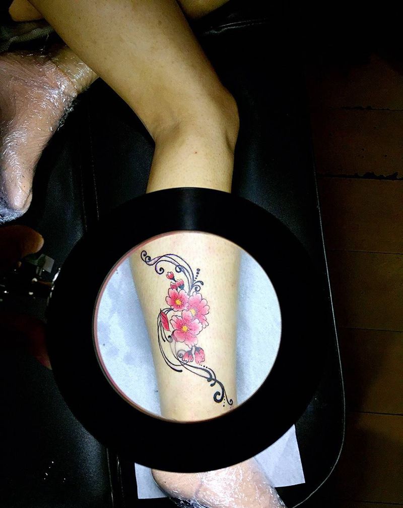 • T网红王老大花腿龙纹身图片_腿部新传统纹身图案