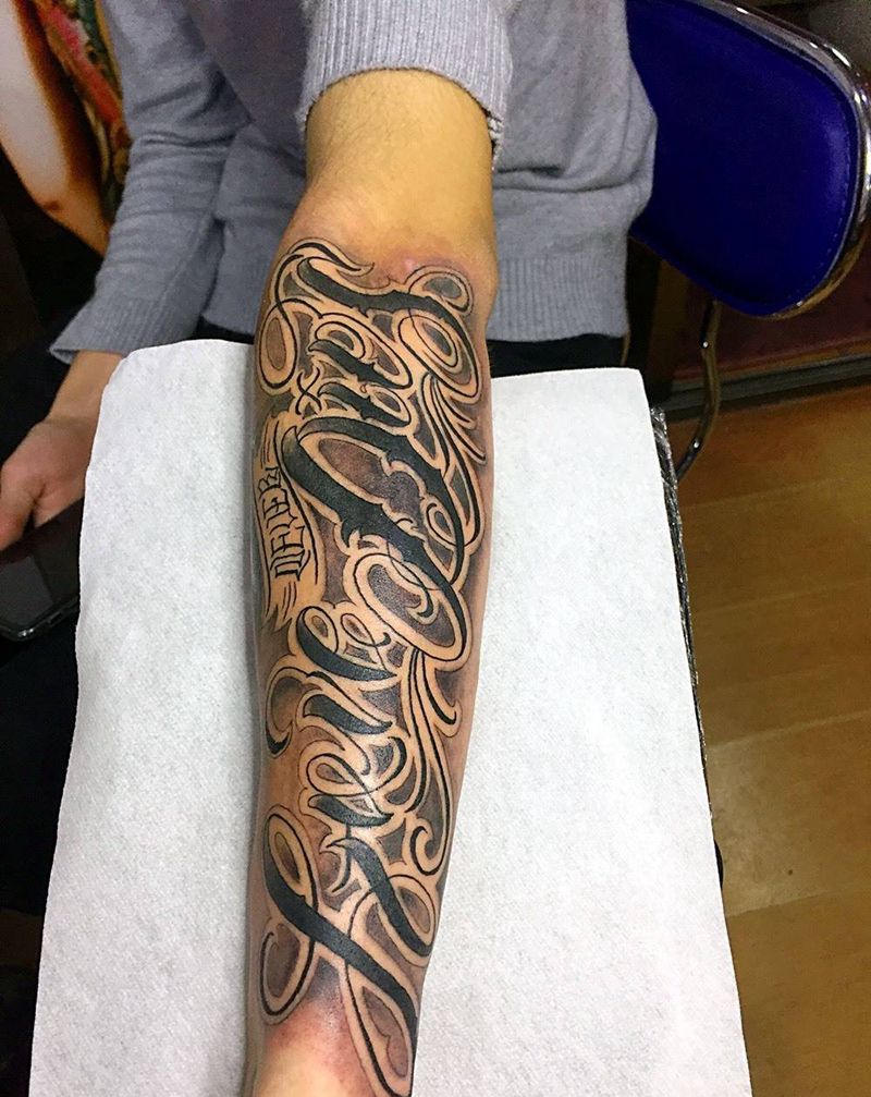 当前位置: 首页 >广东省江门市纹身店-茂.刺青纹身图案>手臂英文花体字纹身图片
