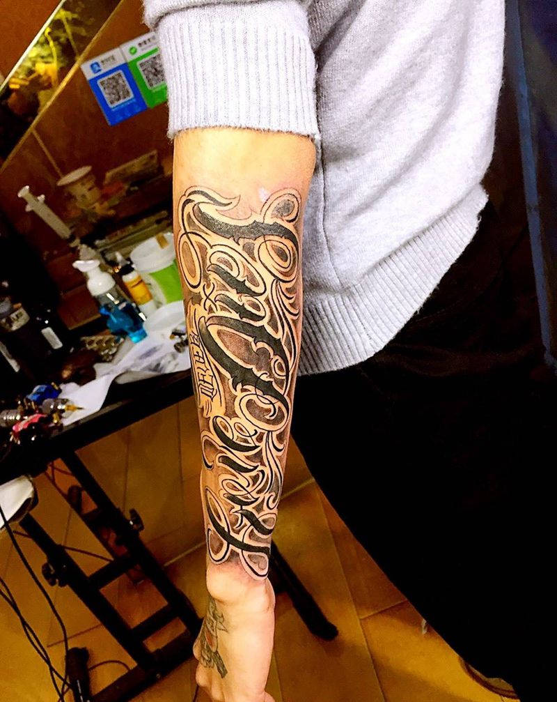 当前位置: 首页 >广东省江门市纹身店-茂.刺青纹身图案>手臂英文花体字纹身图片