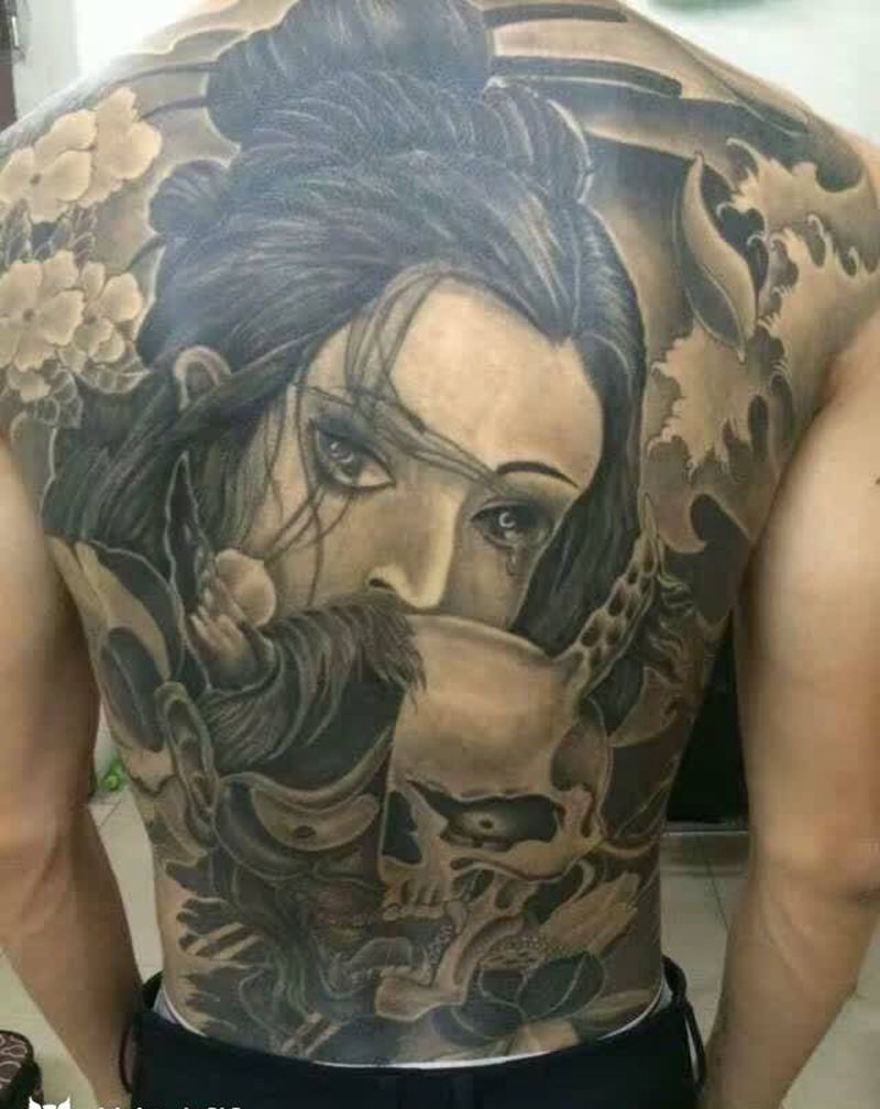 • 黑灰满背纹身图案