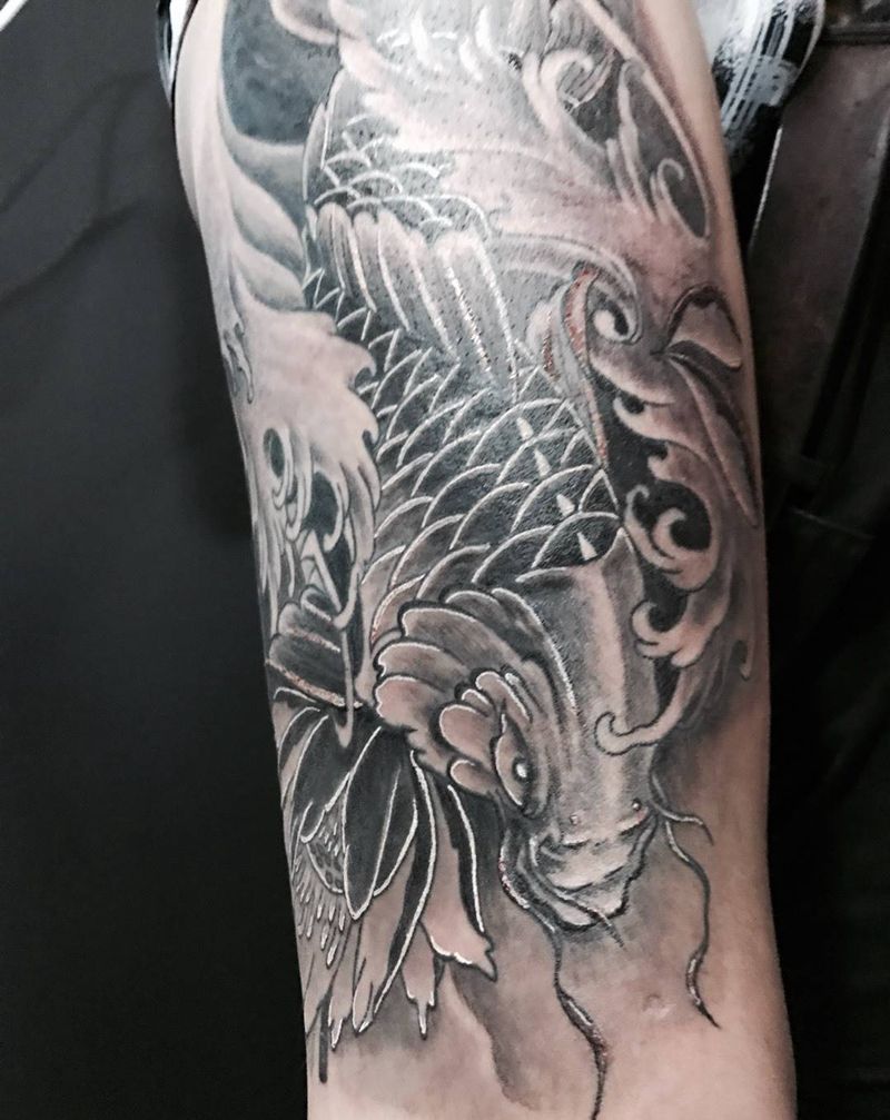 当前位置: 首页 >广东省湛江市纹身店-林裕刺青纹身图案>,鲤鱼的线条是别家纹的纹身图片