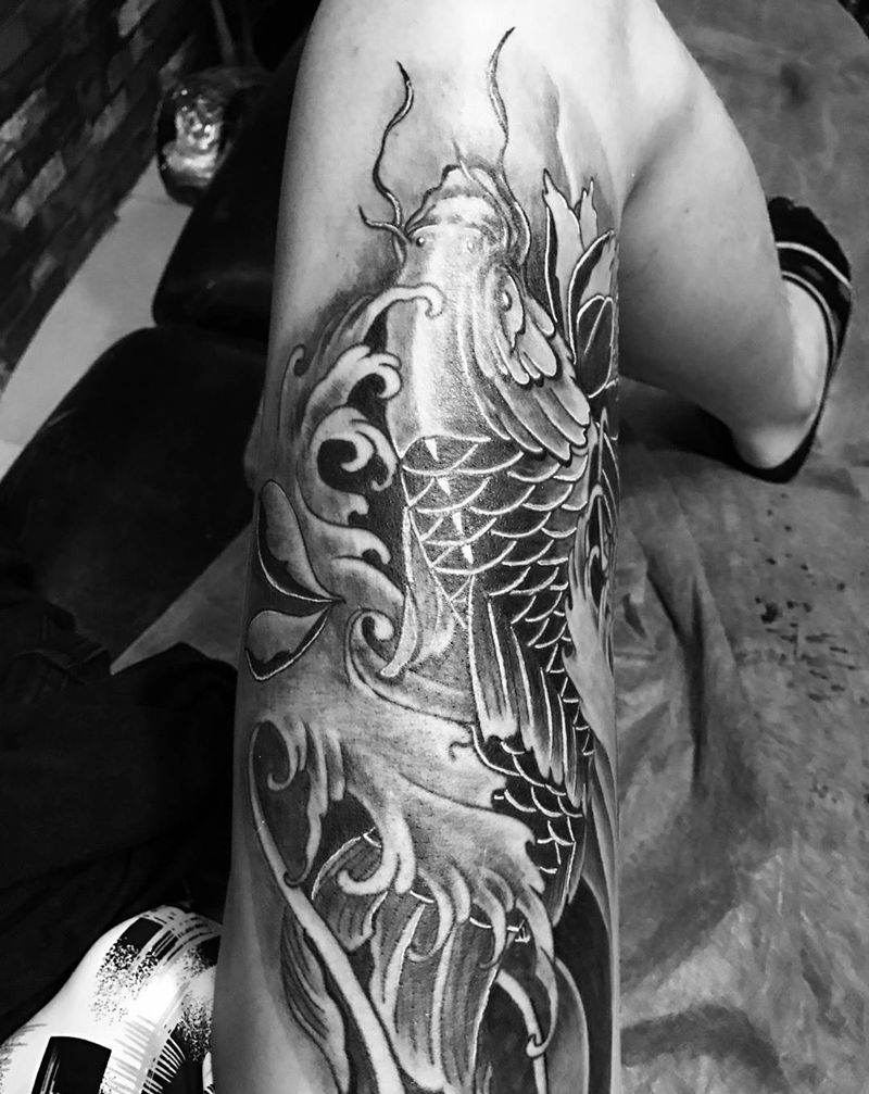 当前位置: 首页 >广东省湛江市纹身店-林裕刺青纹身图案>,鲤鱼的线条是别家纹的纹身图片