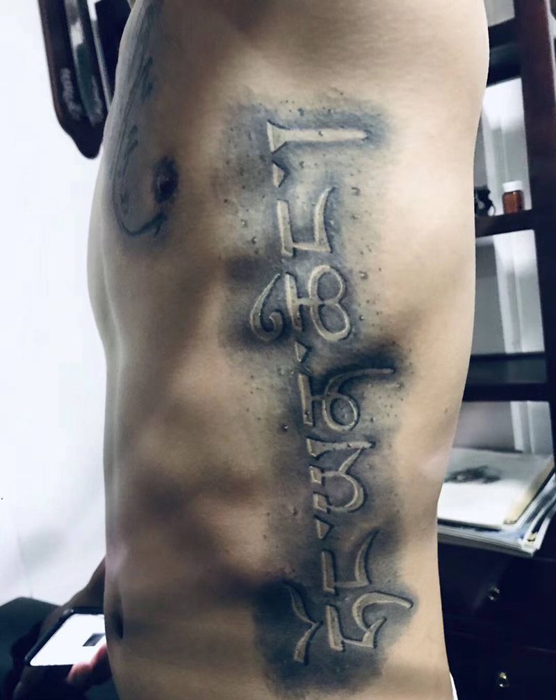 石雕纹身图片_腰部手臂纹身图案